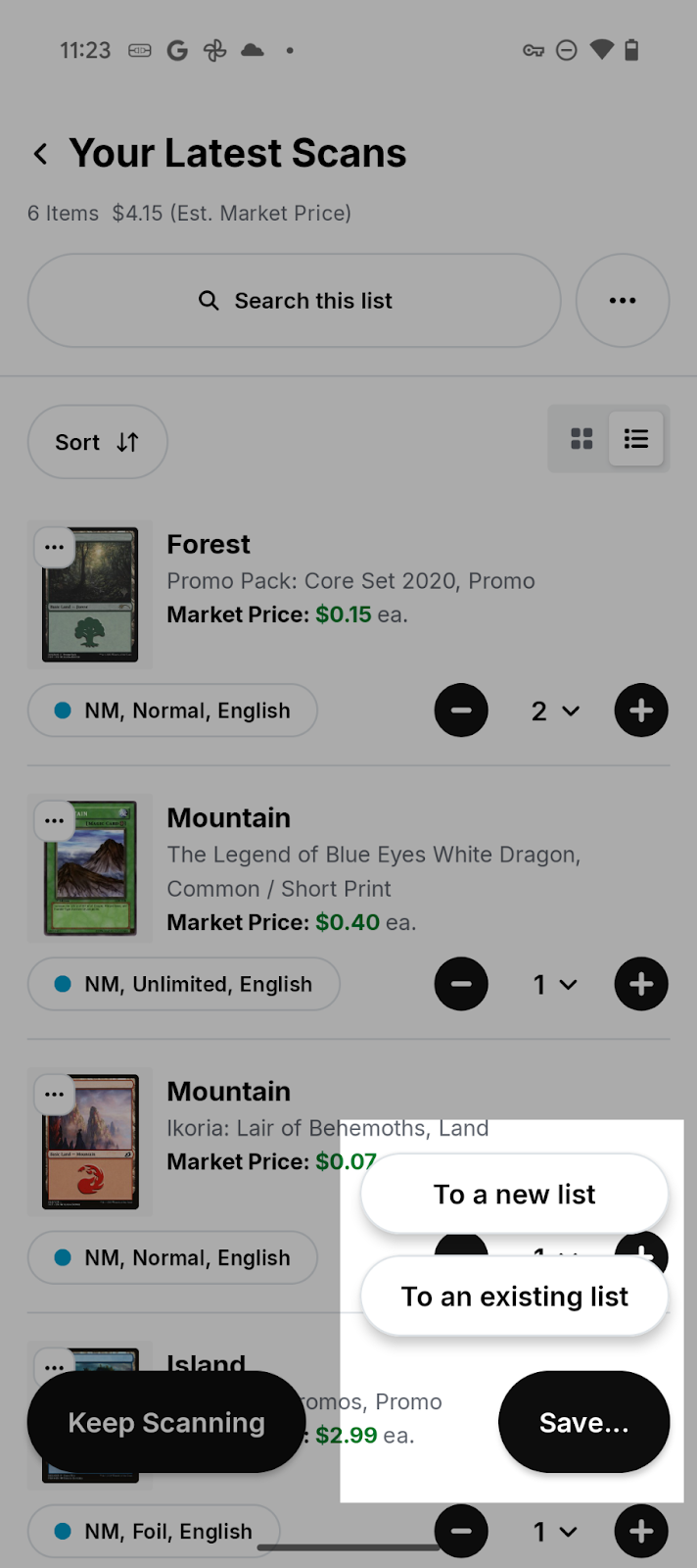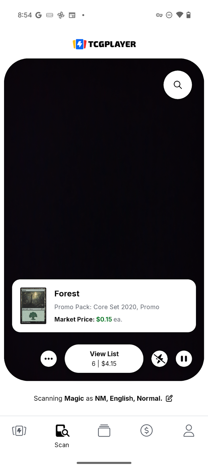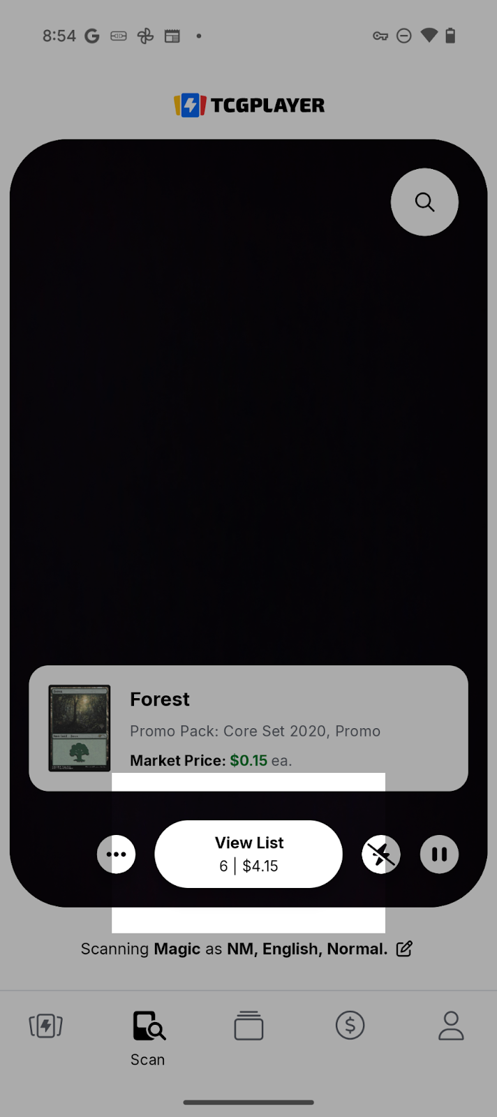 Saving lists in the TCGplayer app is simple, but requires you to be signed in. This ensures your data is never lost by mistake. If you are signed in, navigate to the scan tab.