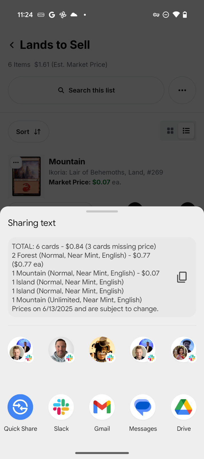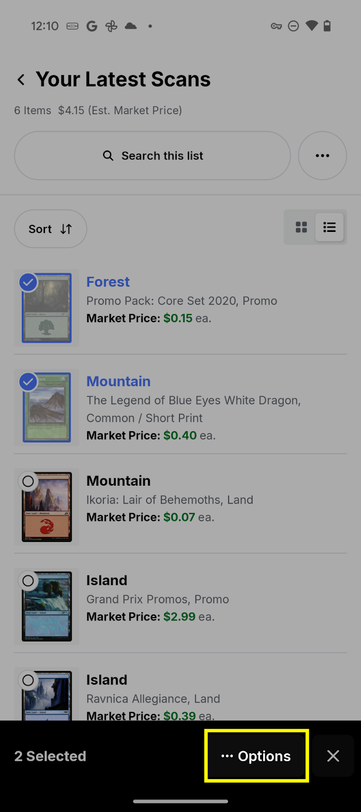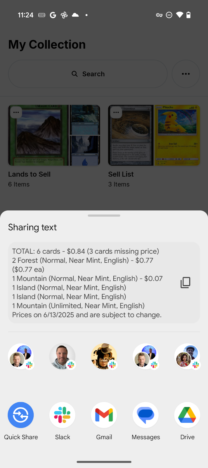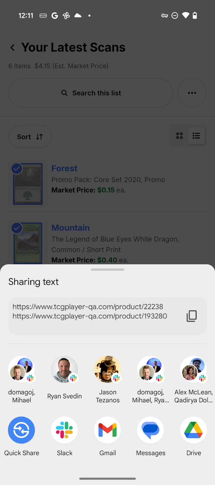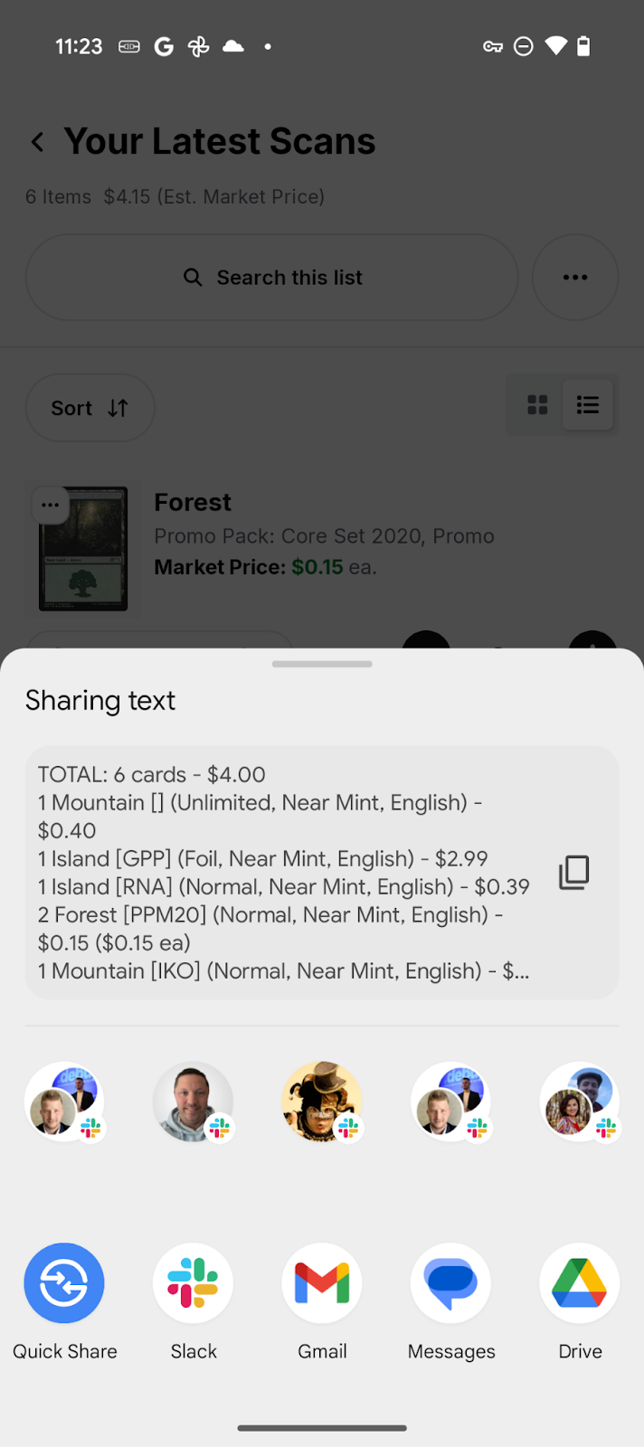 Sharing items and lists in the TCGplayer app is simple. There are three primary places you can share items and lists: the Scan tab, the Collection tab, and within a list.