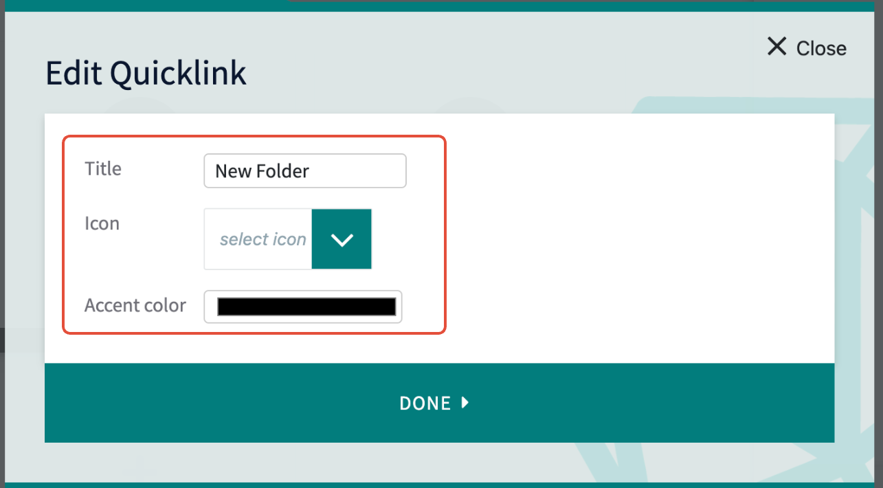 From here, the folder's Title, Icon, and Accent Color can be changed