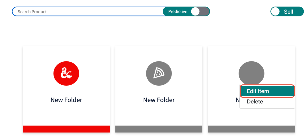 From the Point of Sale tab, right click on the folder being edited and select Edit Item