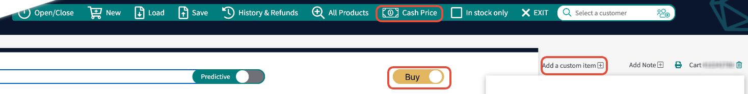 - After Toggling POS Buy On, your POS Buy will automatically be set to cash prices