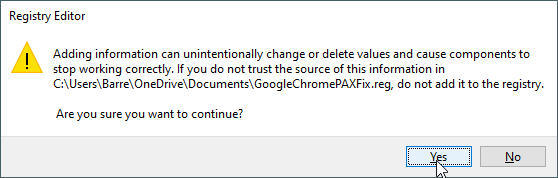 First, you must download the registry entry, GoogleChromePAXFix.reg, that is attached to this article to bypass the new setting for Chrome that is attached to this document.