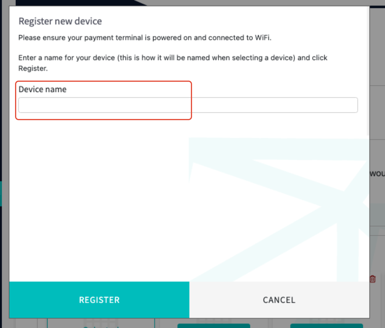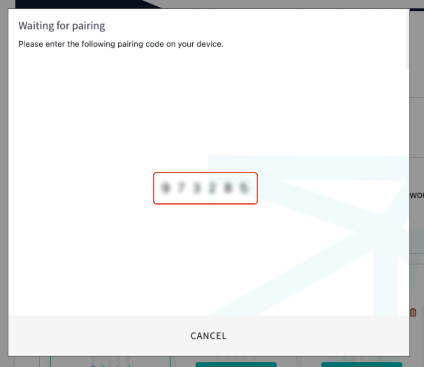 A pairing code will pop up on the screen. Enter this code into your physical payment terminal to complete the pairing process